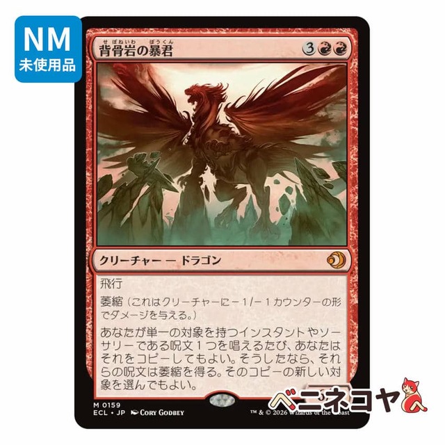 ■商品内容 商品名:「背骨岩の暴君」 エキスパンション:ローウィンの昏明(ECL) 言語:日本語 ■状態 状態は【NM】です。パックから出た直後にスリーブに保管しました。未使用品で初期傷はありません。